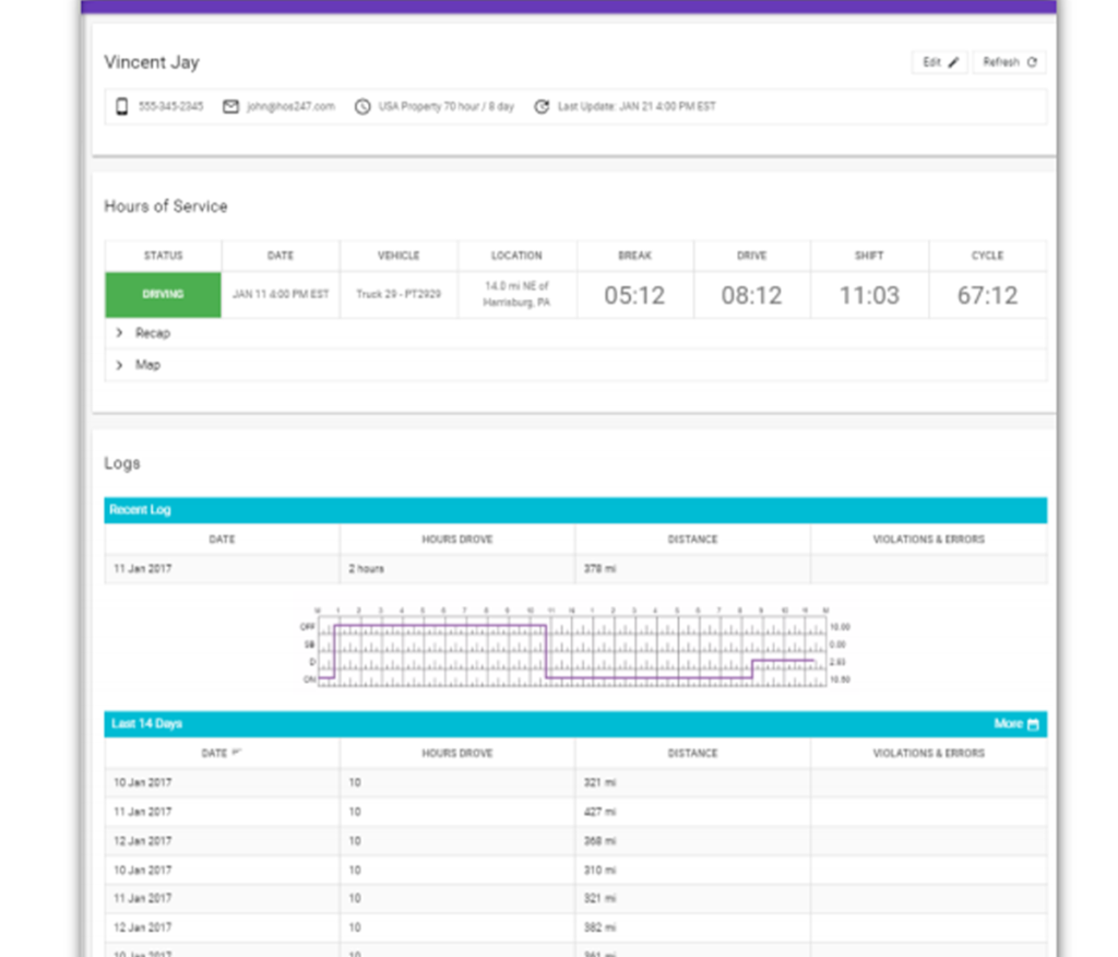 Real-time tracking of drivers, vehicles, and devices.