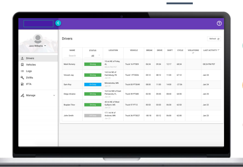 Fleet Monitoring: Compliant drivers and logs